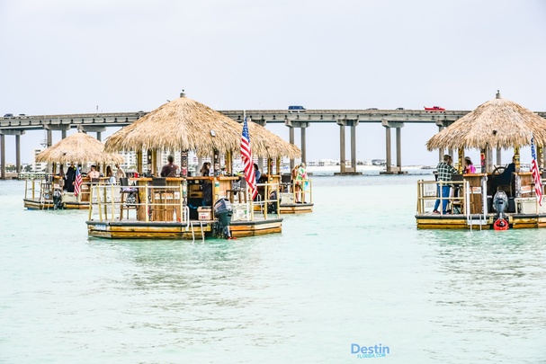 Welcome to Cruisin Tikis Destin, located on Destin Harbor in Destin, Florida. Looking to have a truly unique and memorable vacation experience? Cruisin Tikis is the place for you, your friends, and family! Rent a motorized tiki hut bar and cruise around the water while being in the shade and enjoying beverages and food. Bring whatever food and beverages tickle your fancy and kick back and relax under your shaded motorized tiki hut. Just imagine floating around in the water on your own private tiki bar, it doesn't get much better than that! Cruisin Tikis offer a variety of available times to take out your own personal tiki bar. Whether you want to in the morning, midday, or sunset, Cruisin Tiki has you covered! Don't forget, it's always five o'clock somewhere!