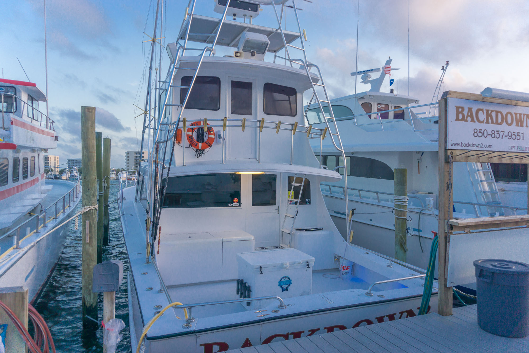 Welcome aboard the Back Down 2, an amazing charter boat located on the Destin Harbor, in Destin, Florida. While there are many charter boats and companies in the area, Back Down 2 is especially unique due to it being marketed and geared towards family fishing experiences. The crew aboard the majestic vessel take great pride in teaching families and friends of all ages about deep-sea fishing. They are also more than happy to teach first times. This crew has years of experience and is sure to make you, as well as your family and friends very comfortable and relaxed as they teach you the "ropes." The boat its self is equipped with countless amenities including but not limited to an air-conditioned cabin that allows guests to cool down from the hot Southern sun. Here is a small blurb quoted from their website explaining to guests what they offer, as well as mentioning various ammenities that arr offered abaord the vessel: (website listed on this page)