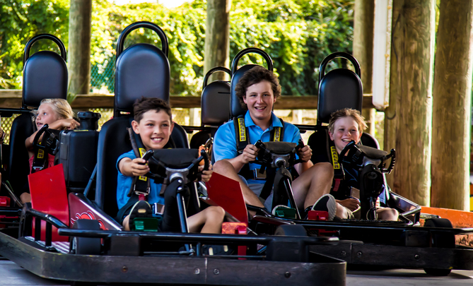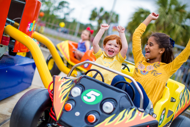 The Track Family Fun Park in Destin features fun for the whole family, ranging from thrill rides like the Hurricane 360 and SkyFlyer, to family go-kart tracks, miniature golf, blaster boats, bumper cars, the spinning coaster, Kids Country rides, and more. The Track’s signature attraction is the elevated, multi-level Wild Woody go-kart track, where drivers go up three and a half stories and then circle back down with an exciting drop at the bottom. The Wild Woody and Family Track feature both double and single karts for family style go-kart adventures. Wrap up your visit in the park's signature arcade - Fat Daddy's Arcade! Be sure to buy a points package to take advantage of the best deals. Use points on all rides and arcade games.