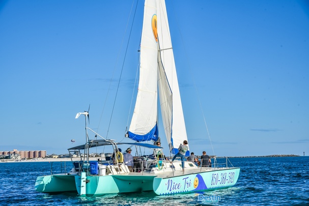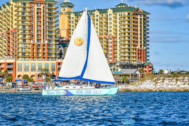 Welcome to Smile n Wave Sailing Adventures located on the Destin Harbor in Destin, Florida. Smile N' Wave Sailing Adventures offers patrons the chance to hop aboard a private 39' ft trimaran sailing boat! Each trip is private for just your group and the crew will tailor the trip to the needs and wants of your group. You can choose to spend the whole trip on the boat, have the boat make stops for you and your companions to swim or snorkel, or you can have the captain direct the vessel to the parts of the water that is densely populated by dolphins. We also offer sailboat sunset tours.