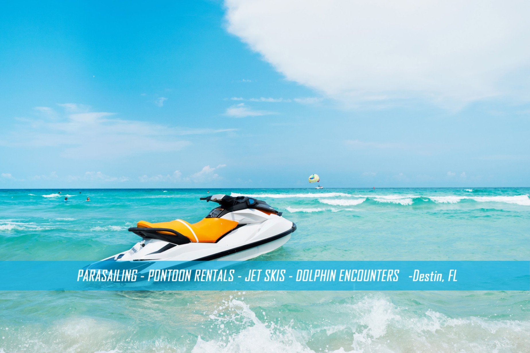 A locally owned and operated watersport rental company that offers pontoon boat, jetski, and kayak rentals, parasail and banana boat rides, and guided dolphin tour excursions! Don’t let other people nickel and dime you. Parking at Mid-Bay Water Sports is totally free! Avoid the congestion. Take advantage of our convenient, low-traffic location outside the harbor! We have no no-wake zones, Don’t spend half of your rental time in a no-wake zone. We will get you cruising right away!
