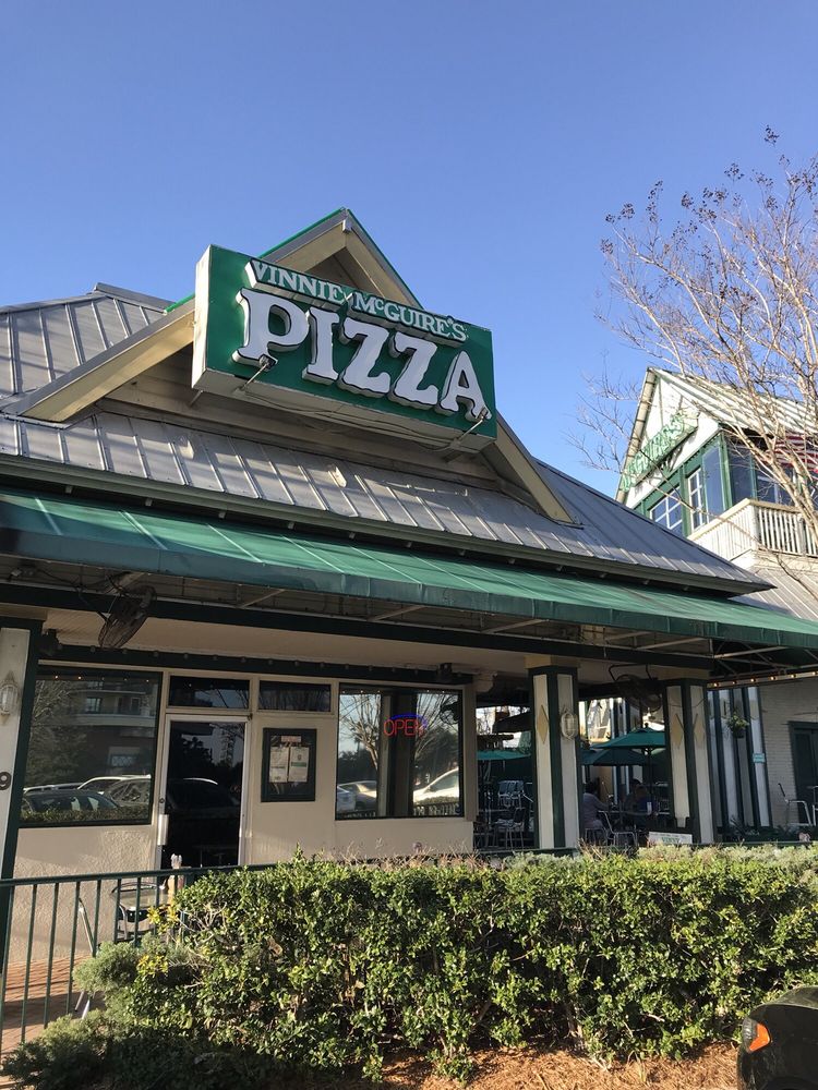 Welcome to Vinny McGuires, located right next door to McGuire's Irish Pub in Destin, Florida. This laid back pizza spot offers make your own pizzas as well as delcious salads and gelato.(European style ice cream) Head into the Irish Pub to catch some live music and grab a few adult beverages, then before you make your voyage home hop over to Vinny McGuires for a late night snack. Vinny's offers a variety of unique topping options on their pizzas including a smoked prime rib topping from the Irish Pub next store. Whether your looking for a delcious pizza for lunch, dinner, or after having a few beverages at the Irish Pub, Vinny McGuires is the place for you!