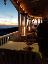 Henderson Park Inn's upscale American restaurant features a romantic coastal setting with a deck.