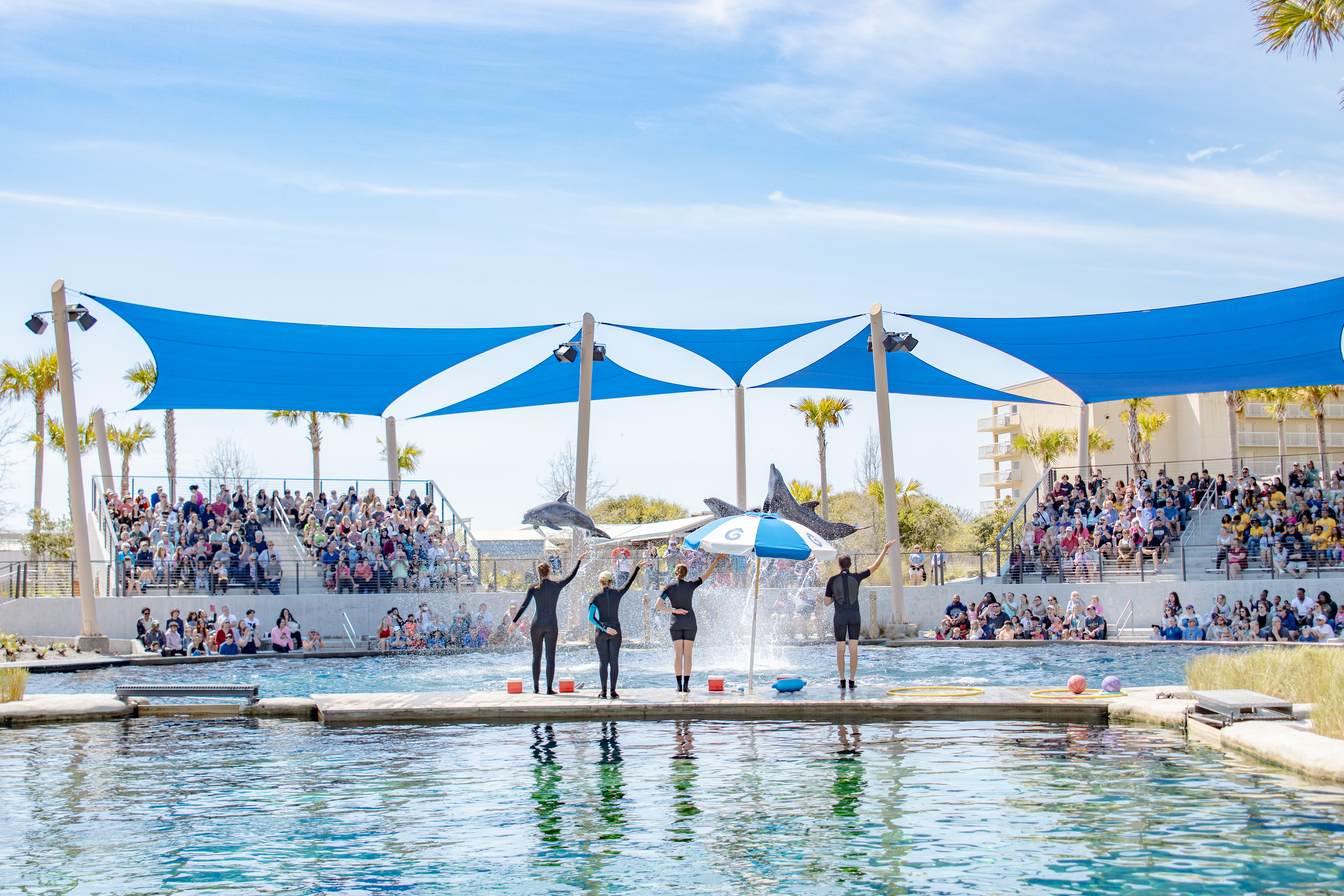 Visitors can enjoy daily dolphin and sea lion presentations, engaging animal chats, and the rare chance to meet marine creatures up close, including dolphins, sea lions, penguins, alligators, and more. The park’s signature dolphin show is a fan favorite, showcasing the intelligence and playful nature of these incredible animals.